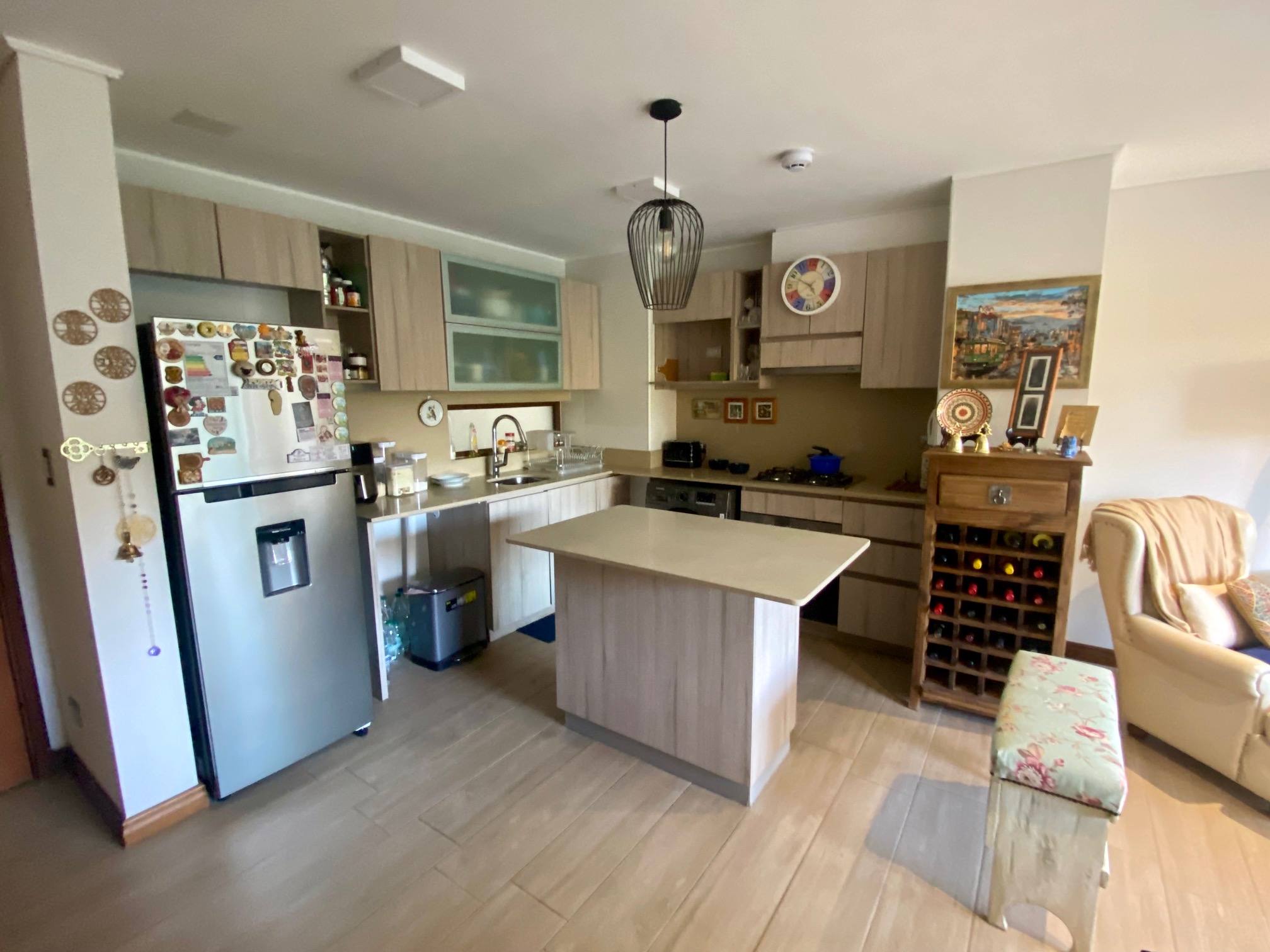 Tiene un living comedor muy luminoso con cocina americana, completamente equipada con muebles, desayunador, y artefactos eléctricos (horno, encimera y campana); además cuenta con conexión de lavavajilla y lavadora.