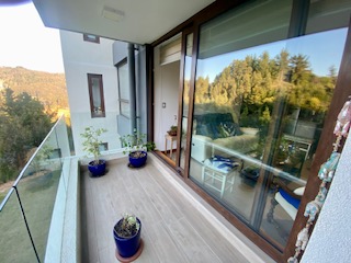 El living esta conectada a una terraza, con una hermosa vista al bosque.