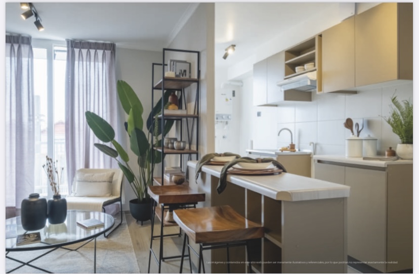Tiene un luminoso living comedor, los cuales están conectado a la cocina, amueblada y equipada con cocina a gas, campana, además de conexión para la lavadora.