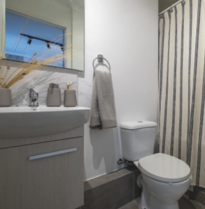 Posee 3 dormitorios con closet. Además de 1 baño equipado con vanitorio y tina.