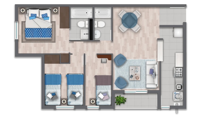 Superficie departamento: 55 m2 + 1,9 m2 terraza